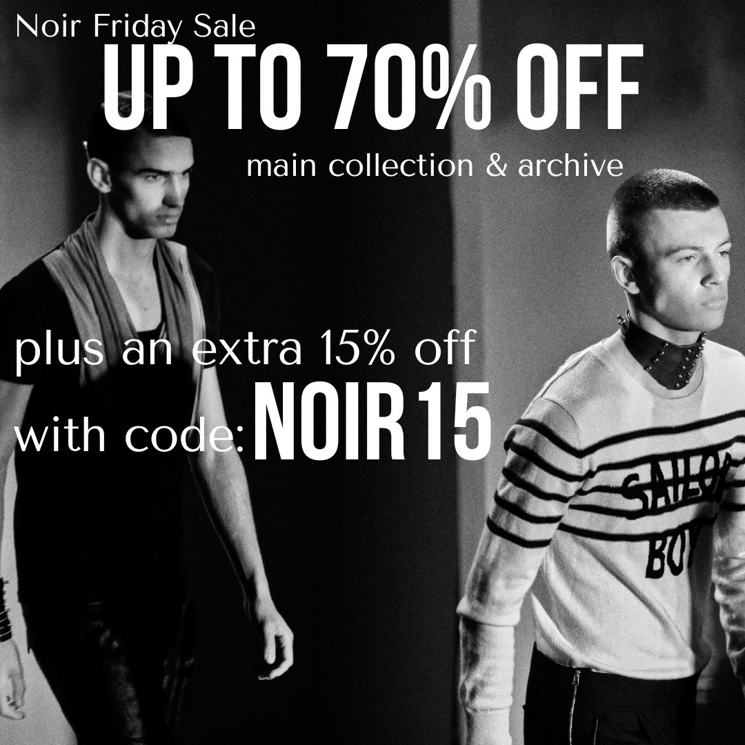 Black Friday is here. Enjoy 70% off Mainline, 60% off Archive - plus an extra 15% off with code: NOIR15